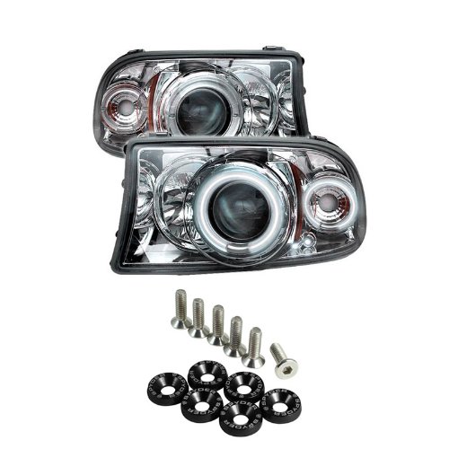 CarPart4U Dodge Dakota / Durango 1PC CCFL LED ( Replaceable LEDs ) Projector Headlights - Chrome & Spyder Washer 6pcs - Black