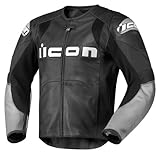 1.2-1.4mm premium-grade Brazilian leather chassis Removable Field Armor elbow and shoulder impact protectors External injection-molded plastic protection on shoulders, elbows and back Removable dual-density foam back pad Removable wind-resistant insulated vest Gathered stretch panels for comfort and flexibility Perforated leather in key areas for superior ventilation YKK autolock zippers Upgradable to Icon Stryker CE-approved back protector Icon attack fit with tailored body and pre-curved arms